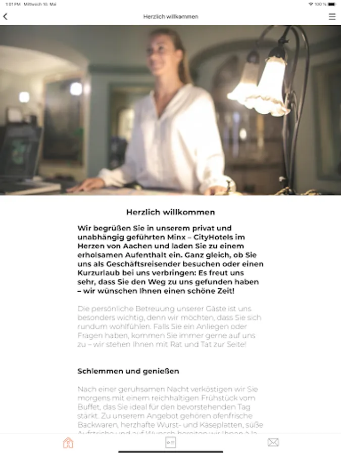 You will receive the latest news as push messages on your smartphone or tablet. This will ensure you are always kept up-to-date about our hotel garni in Aachen and can plan your holiday or business trip perfectly. You will also find a large selection of magazines and journals to read online in the app.
