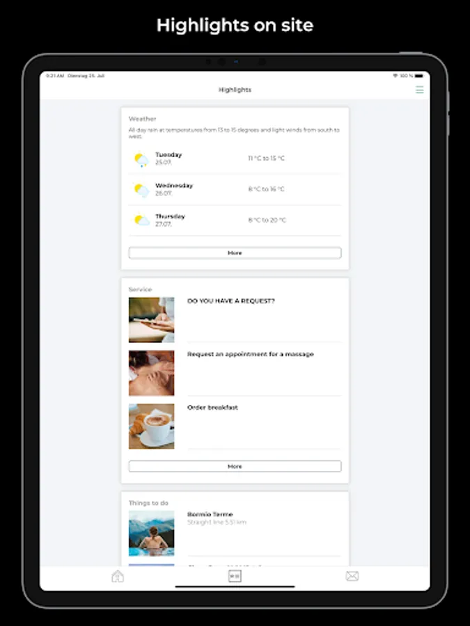 Lean back and unwind in our outdoor spa and browse through our wellness offers. You can also book soothing massages via the app.