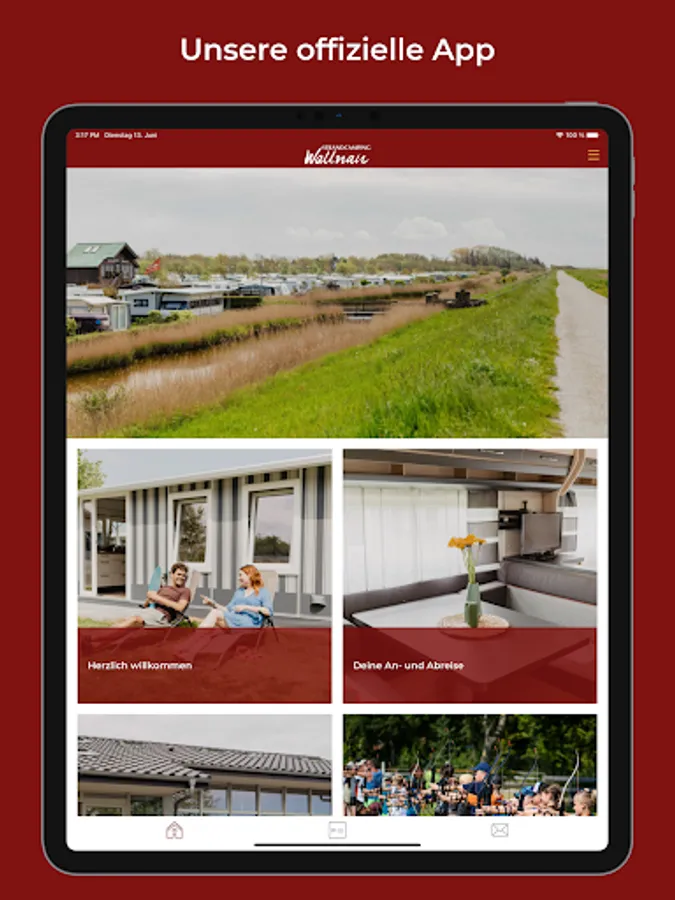 The app is your ideal holiday companion - here you will find the most important information about your holiday at the Wallnau campsite on the Baltic Sea. Download now!
