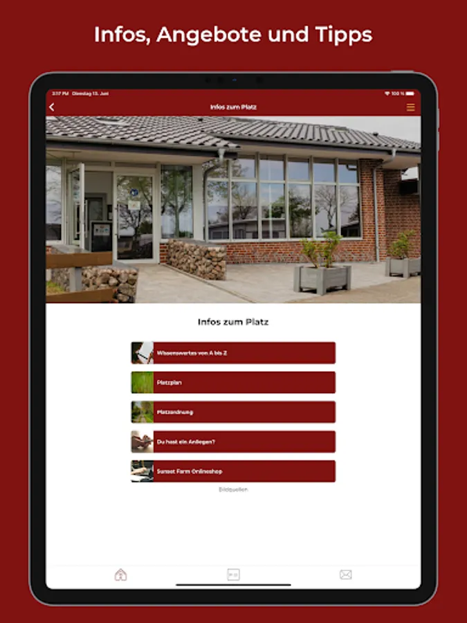 You will receive the latest news as a push message on your smartphone or tablet - so you are always well informed about the Strandcamping Wallnau campsite and the Sunset Farm.