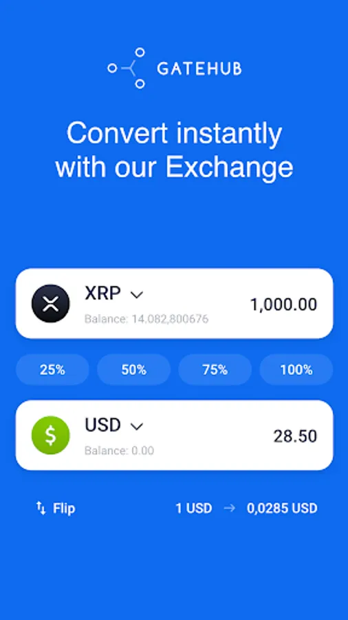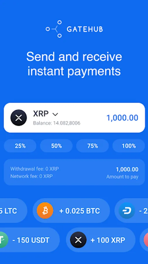 GateHub Wallet is easy to set up and easy to use. It allows you to access the decentralized XRPL network, with instant and cheap payments over blockchain and trading on the XRPL DEX.