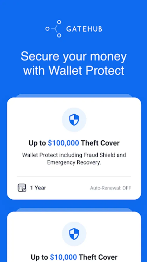 Wallet Protect offers you the safest and most comprehensive way to protect your crypto assets. It secures your funds with Multisignature, Teft Cover and Fraud Shield. Upon subscribing, you receive a personalized certificate from Coincover confirming your cover level and providing assurance of your protection!