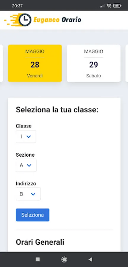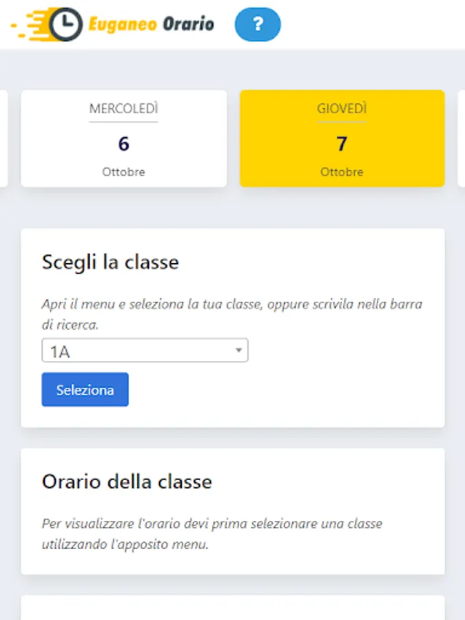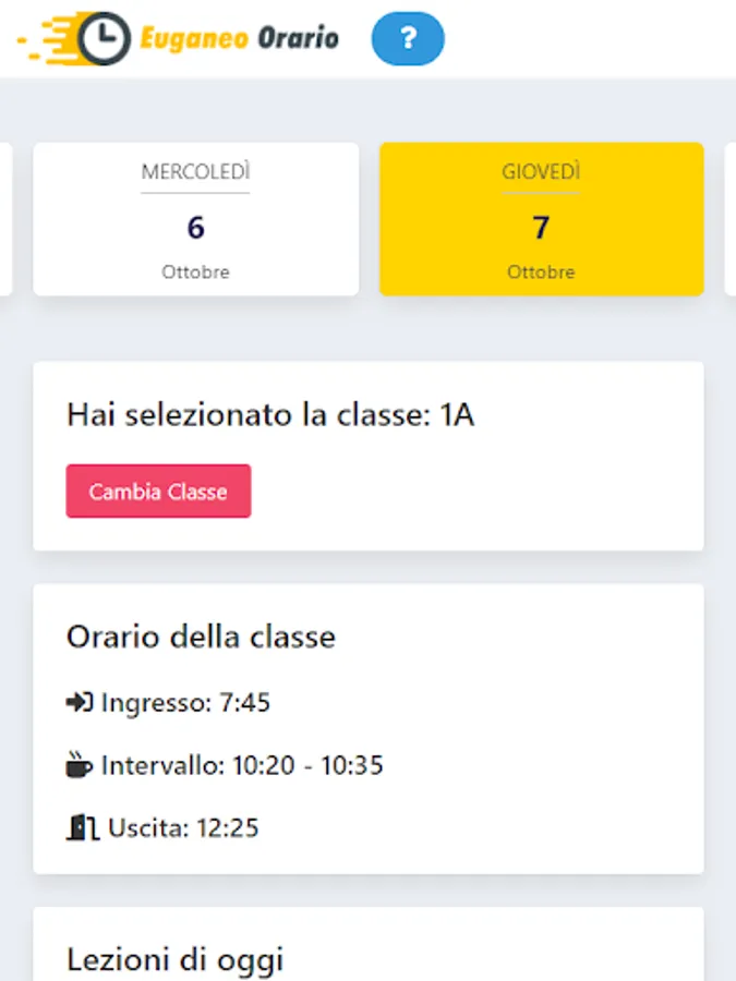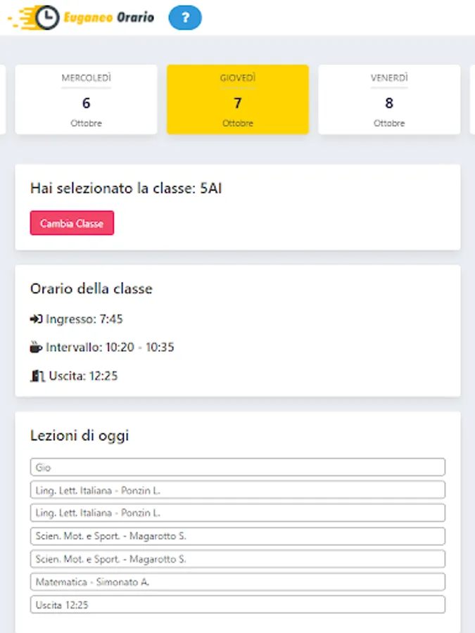 Application to view the class schedule of the IIS Euganeo in Este (PD). Made by Giacomo Brochin.