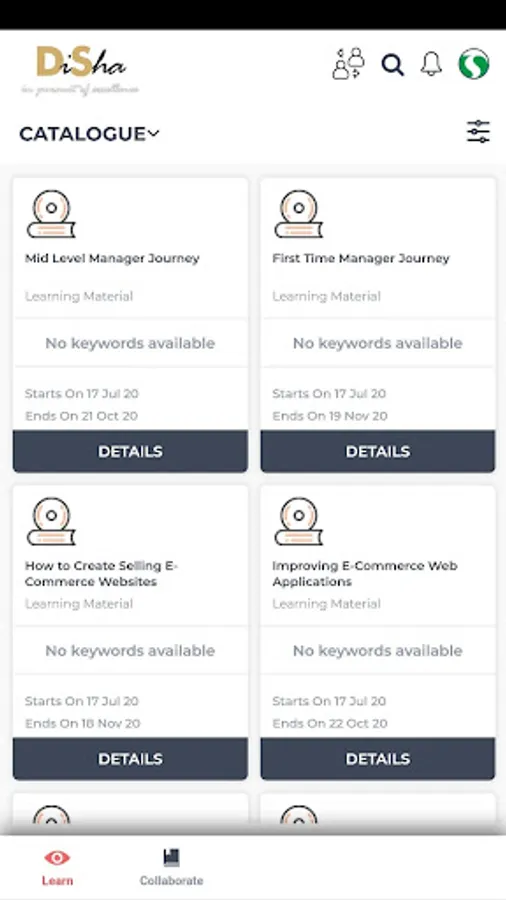 Disha is a Learning Management System platform for all the trainings or learning interventions conducted at DS Group. Disha LMS app, brings user-friendly navigation, which enable users to completely immerse in the learning experience by accessing their own learning platform from any mobile device, by consuming personalized e-learning content and by tracking the progress.