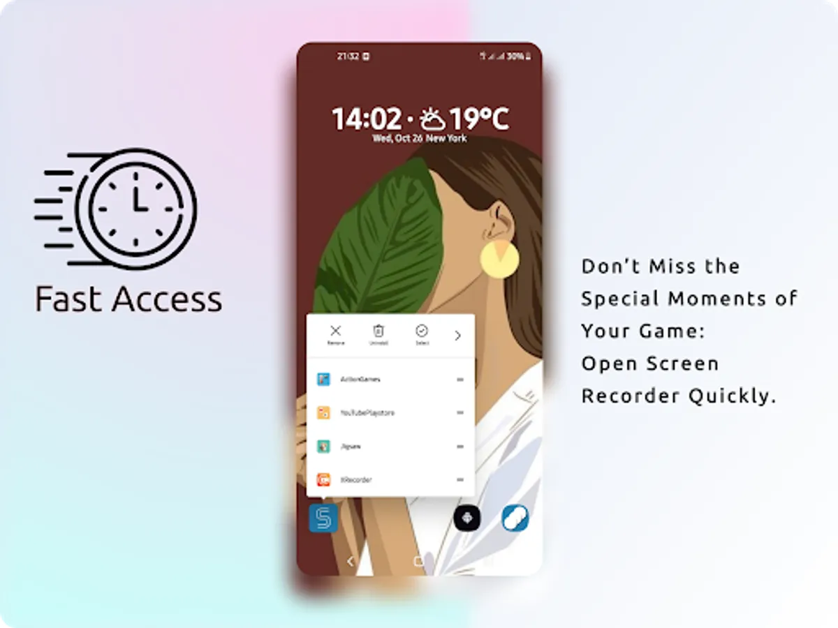 Imagine When you are playing a game, you face a certain scene in the game that you need to record it immediately. You go to home page to find the recorder among many shortcuts in a cluttered home page! It will be wonderful if you can run the screen recorder with one action.
