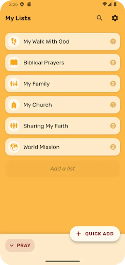 * Schedule cards by date or day of the week/month, or just let PrayerMate pick for you
