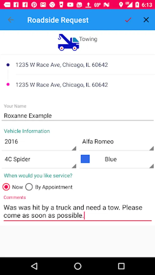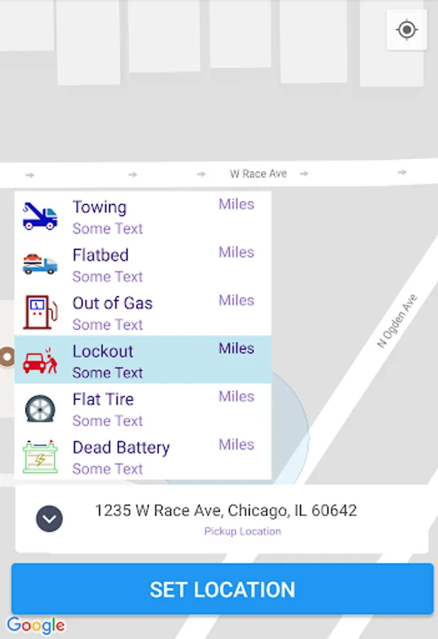 ** Send your request to local Roadside Assistance providers. The search uses a small radius so you can get the fastest service.