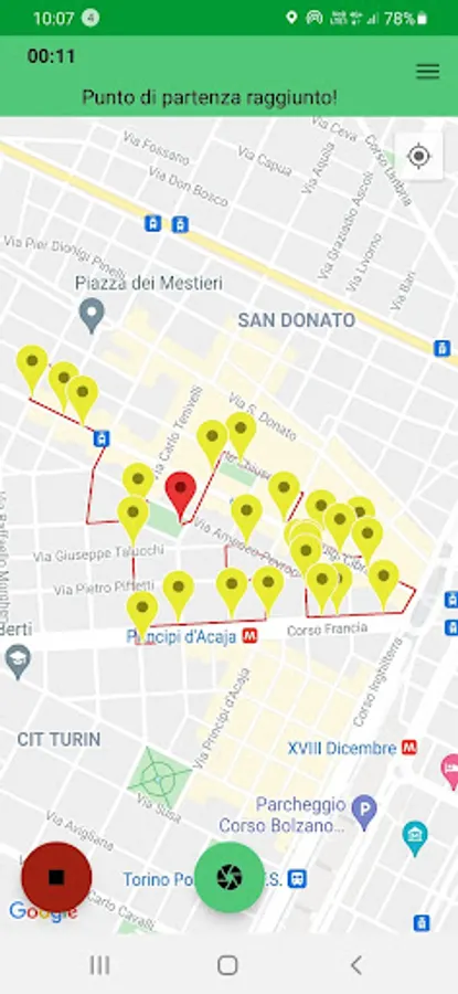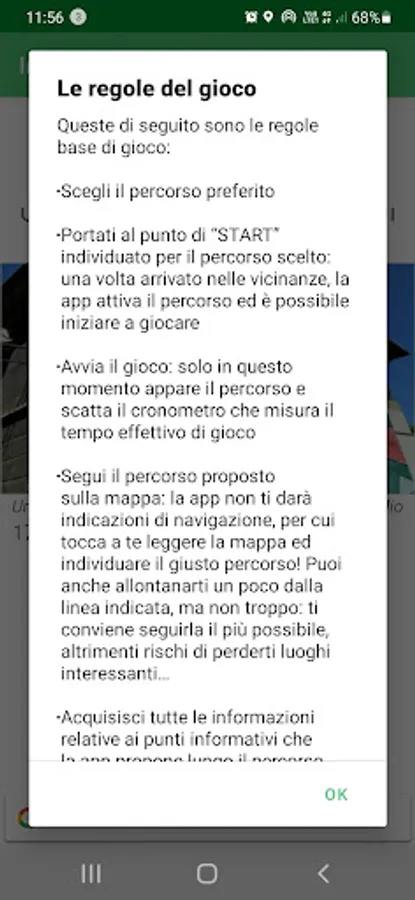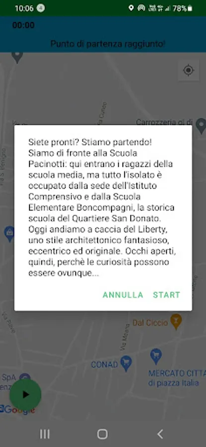 · Proceed to the "START" point identified for the chosen route: once you arrive nearby, the app activates the route and you can start playing