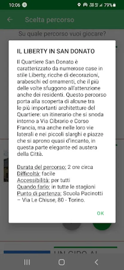 · Follow the proposed route on the map: the app will not give you navigation directions, so it's up to you to read the map and find the right route! You can also stray a little from the indicated line, but not too much: you should follow it as much as possible, otherwise you risk missing out on interesting places ...