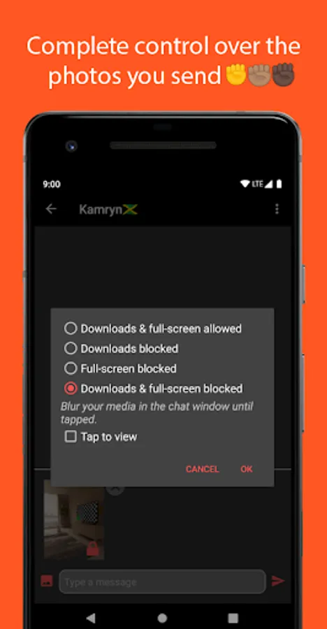 Send a photo that the recipient can view, but not save. Or prevent the photo from being opened full-screen. Screenshots are disabled while using Fyeo.