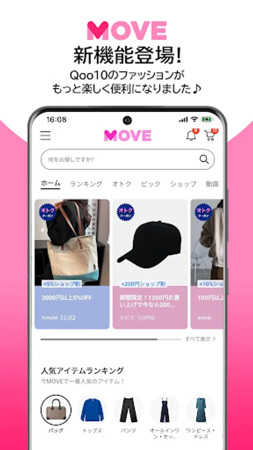 MOVE is a new corner of Qoo10 that turns customers' worries about how to dress and coordinate into "the fun of choosing". increase. Take advantage of our first-time discount.
