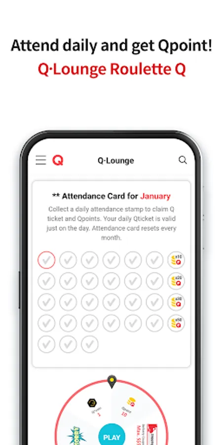 Mark your attendance daily at Qlounge and collect rewards to make your purchases even cheaper