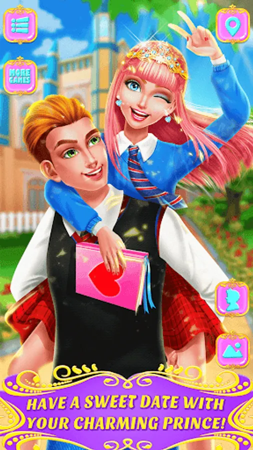 Play as a royal princess this fun high school themed design game. Get ready for romance and sweep Prince Charming off his feet!