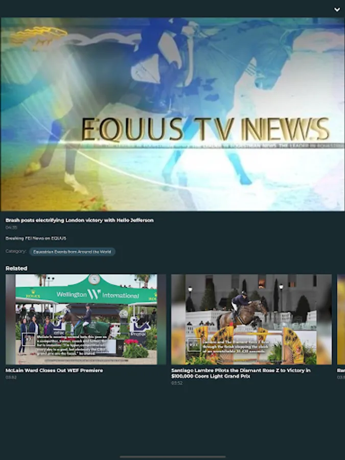 EQUUS is the Television Network for the Equestrian Lifestyle and the Global Equestrian Enthusiast. Join EQUUS from the World's Equestrian Hotspots for News, Information, Events, Features and All Things Equestrian Join The Millions on EQUUS...Always On with No Subscription Fees!