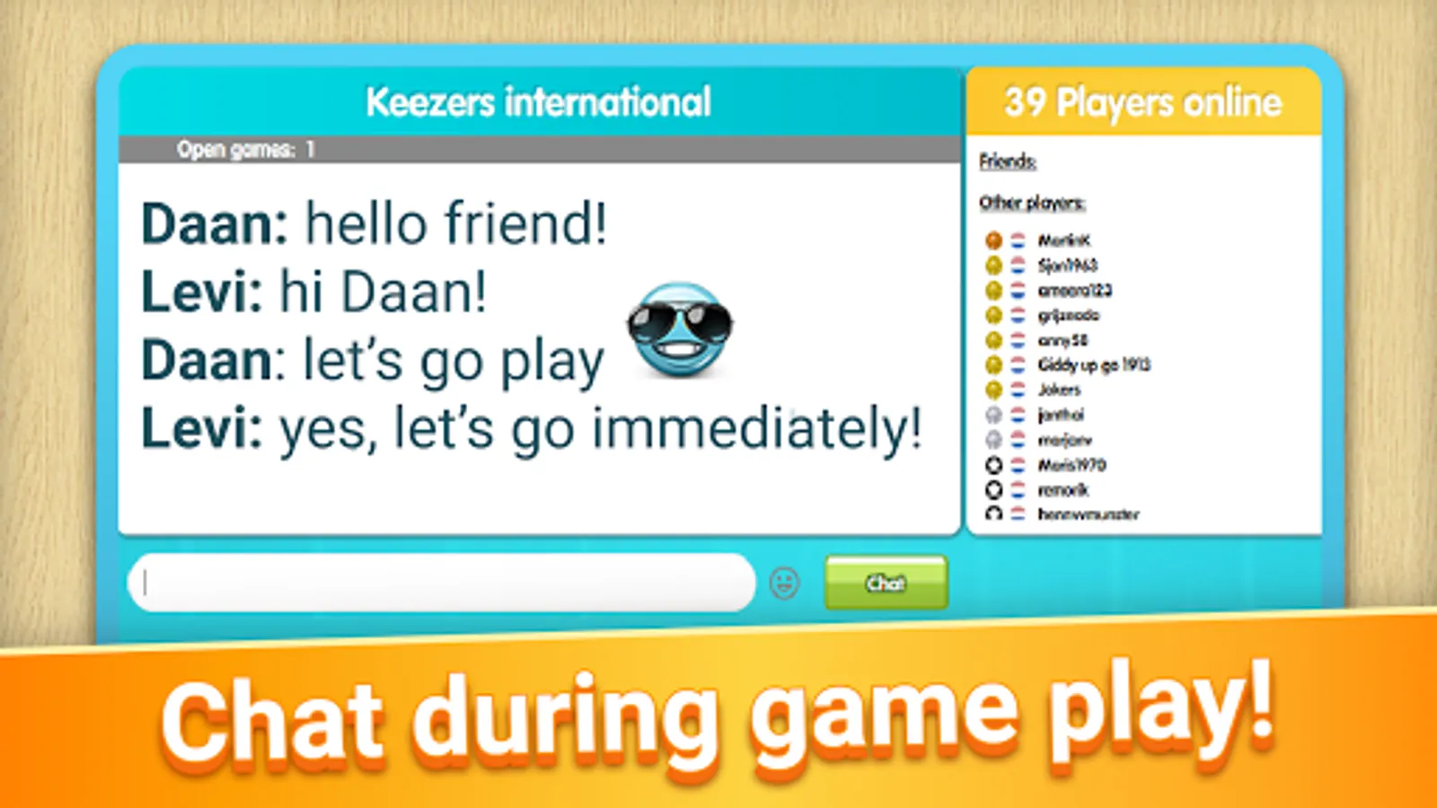 If that is STILL not enough for you, Keezers has their own chatbox in which you can talk to other users while playing. It is almost as if you were playing in your own living room! From now on you can play Keezers at anytime, anywhere and with anyone!