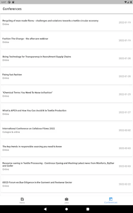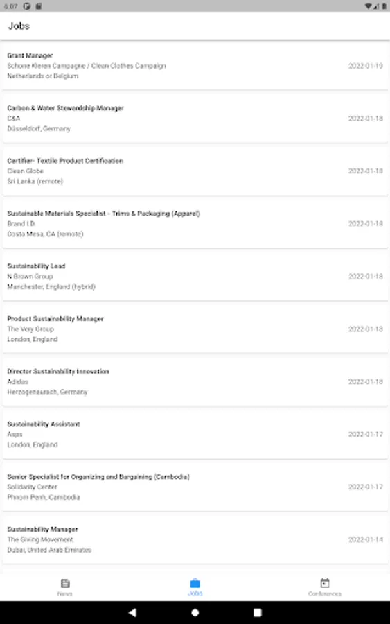 Stay up to date with news and reports as they break. News is global, so you will also find story summaries from other languages, particularly from local sources in major supply chain countries (such as Bangla, Khmer, Vietnamese, Turkish, Arabic, Spanish, and more). The Kyna Intel app also features our job and event boards, keeping you up to date with newly opened positions in sustainable fashion and upcoming industry events.