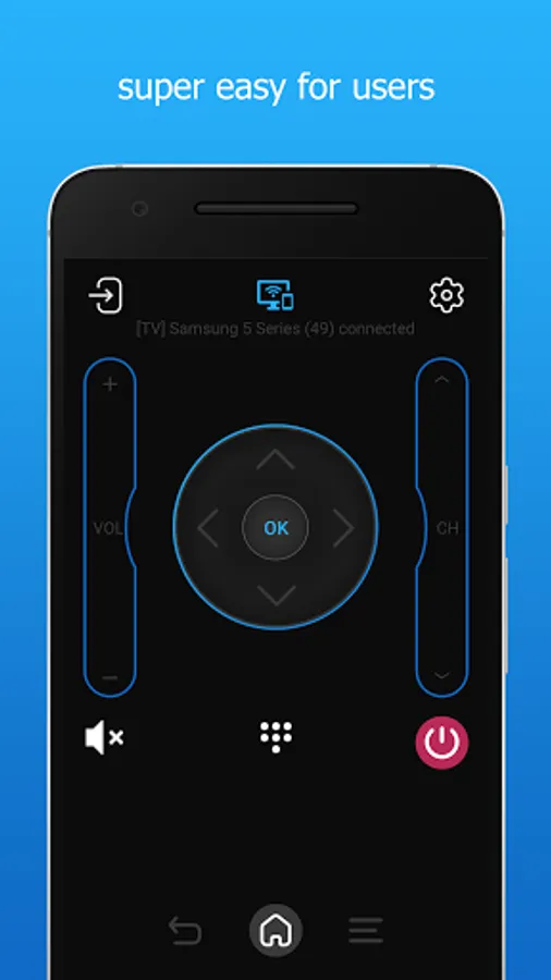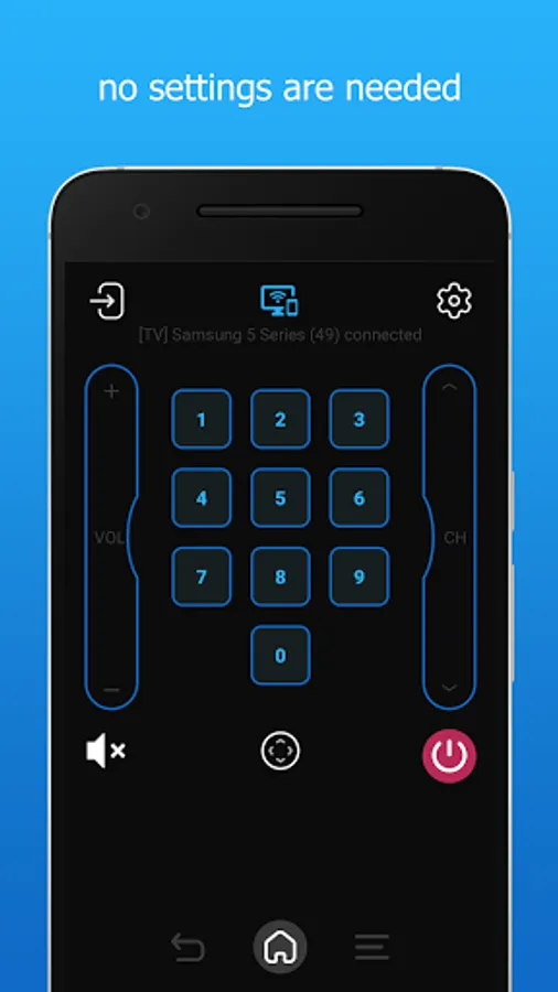 TV Remote control for Samsung is super easy for users as no settings are needed. It illustrates exactly the real remote onto your phone, which means all functions are available including from selecting channels, adjusting volumes to connecting youtube or even playing video games. Everything you need to get it accessible is that make sure you have TV turned on and the app opened on your phone. It is extremely simple and uncomplicated at all. This is truly an answer for the problems of the real remote disappeared when you need it or running out of battery. One app but solve many annoying troubles.