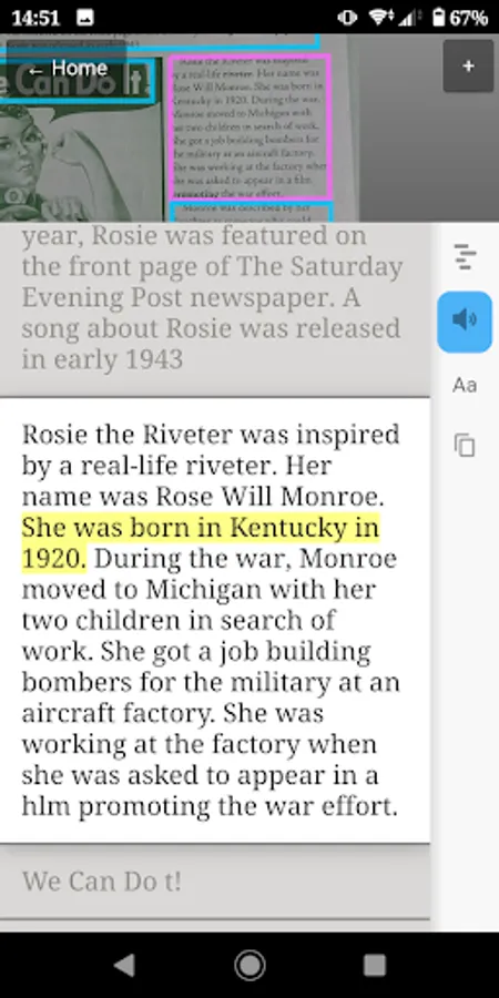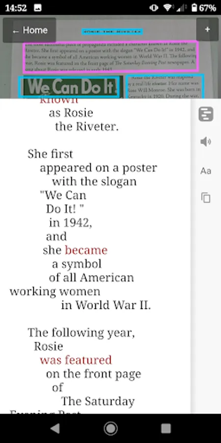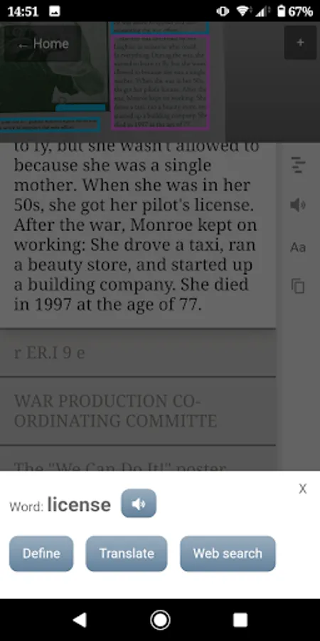 - Tap any word to learn more (pronunciation, dictionary lookup, translate, etc.)