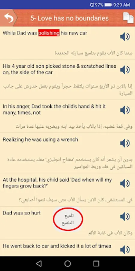 The program contains more than 60 story translated into Arabic within more than one level of the English language