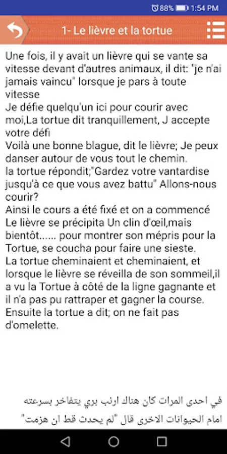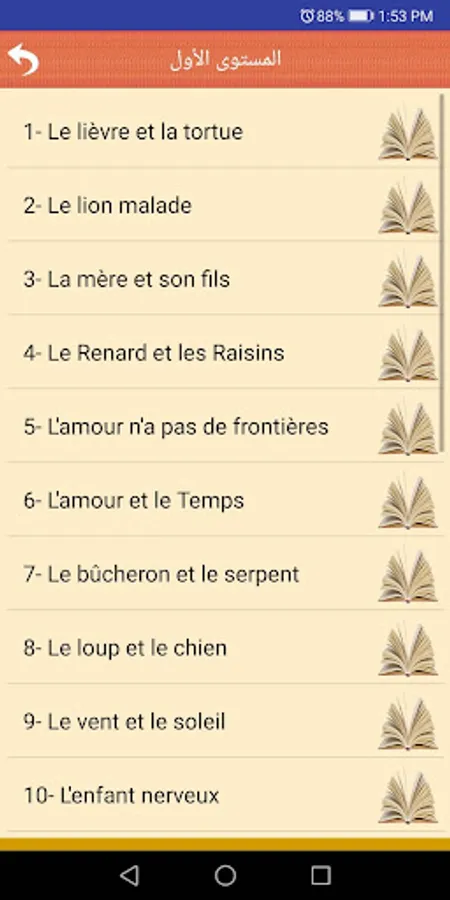 The program contains more than 60 story translated into Arabic within more than one level of the French language