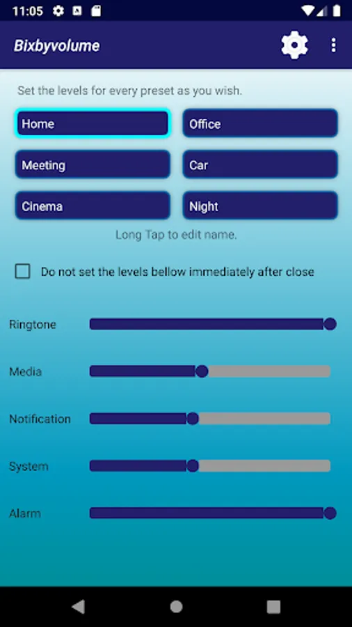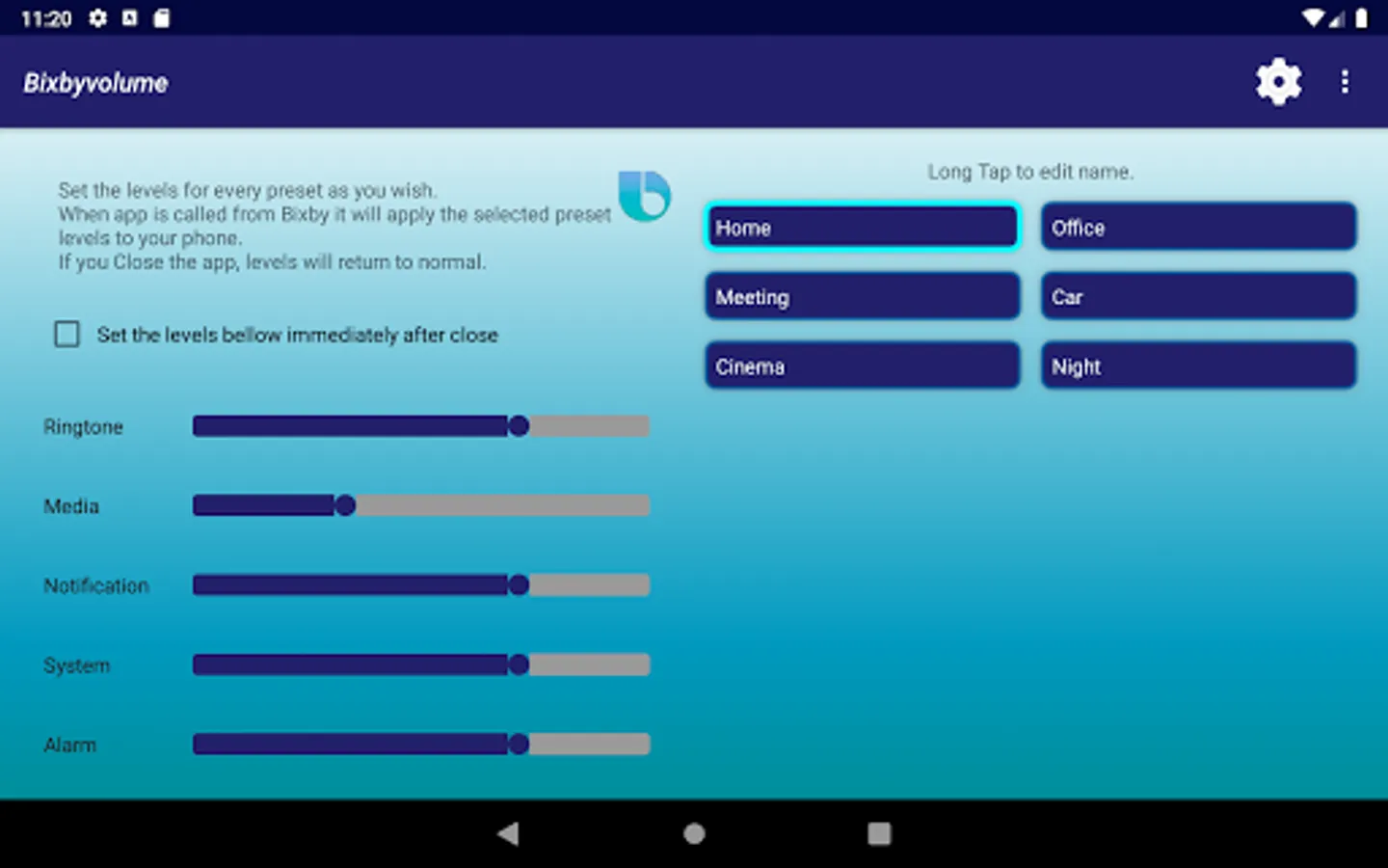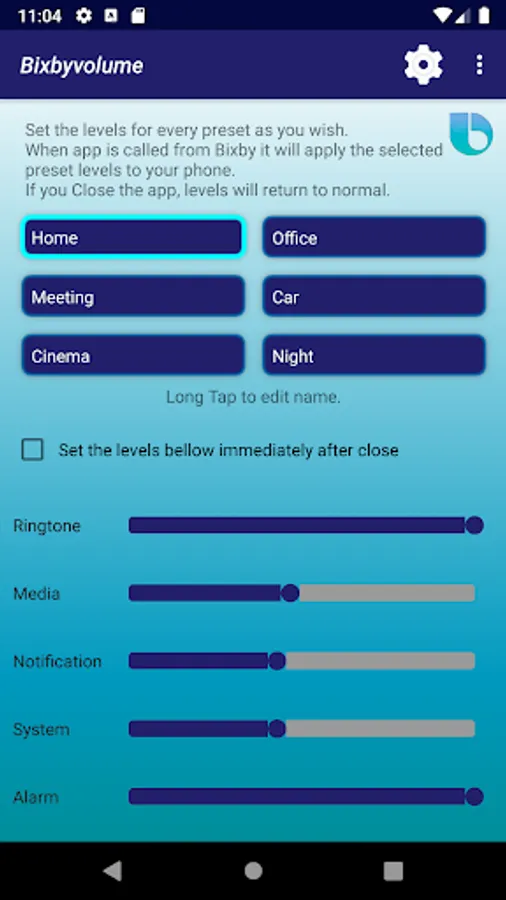 Now, every time you open the app and select a preset, the volume levels will take immediate effect if you close it.