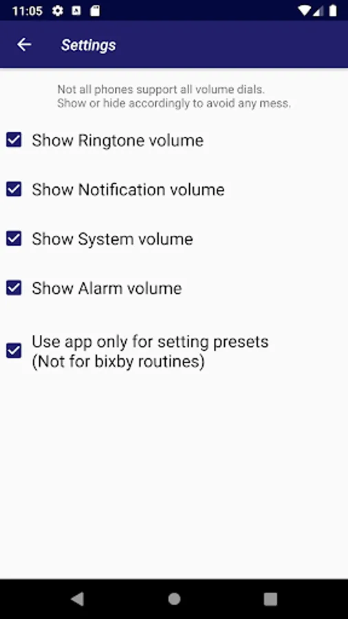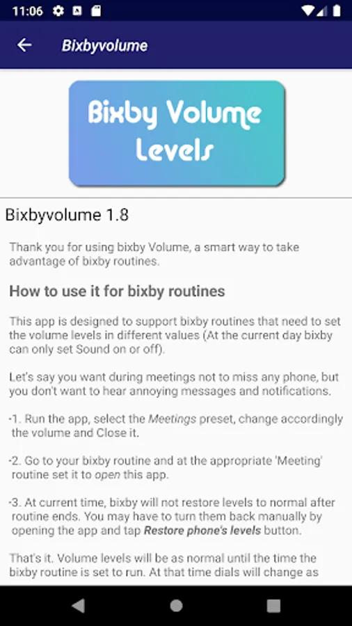 This app is designed to support bixby routines that need to set the volume levels in different values.