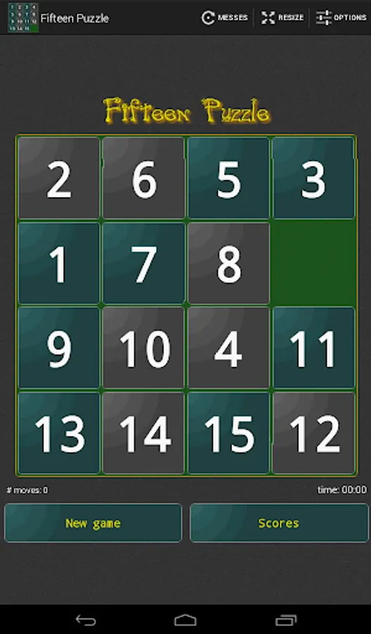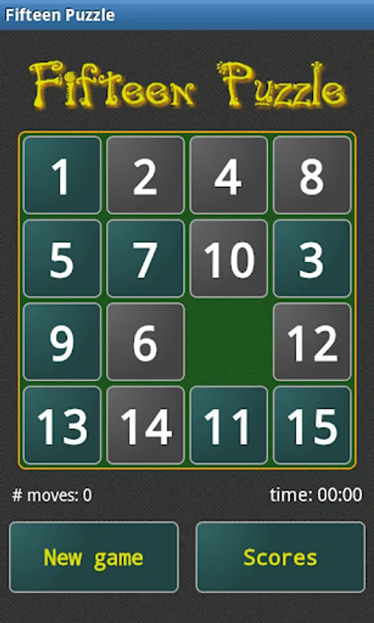 A simple version of the popular Fifteen Puzzle. The goal is to sort the frame of 15 numbered tiles.