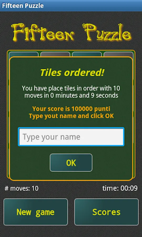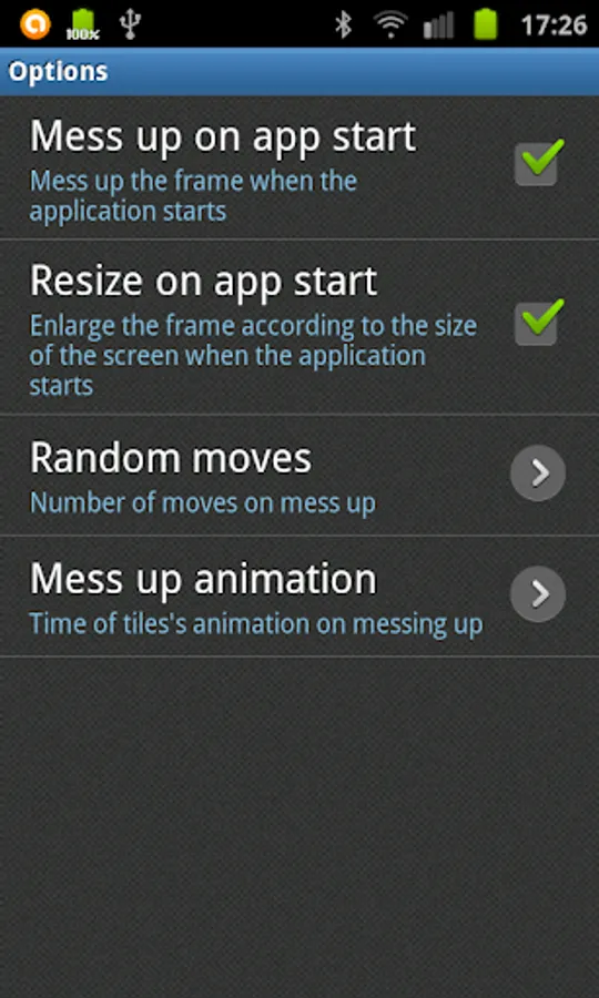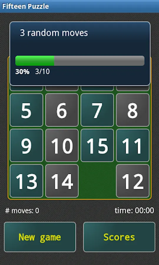 The app display animation of tiles during messing up (It can be used also as memory game) and you can set the speed of messing up and the number of random moves.