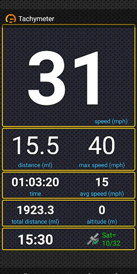 Simple speedometer with measurement of instantaneous speed, maximum speed, distance and altitude; also records the total distance from the first launch of the app. Made as a substitute for a simple bike computer. The measurements rely on GPS so they might not be accurate.