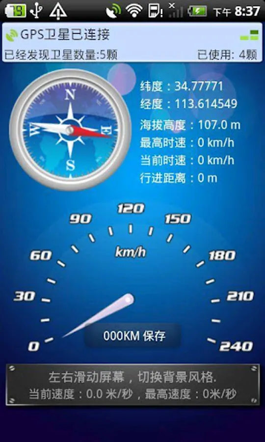 2, speedometer - including speedometer, kilometer, latitude and longitude, altitude, overspeed warning;