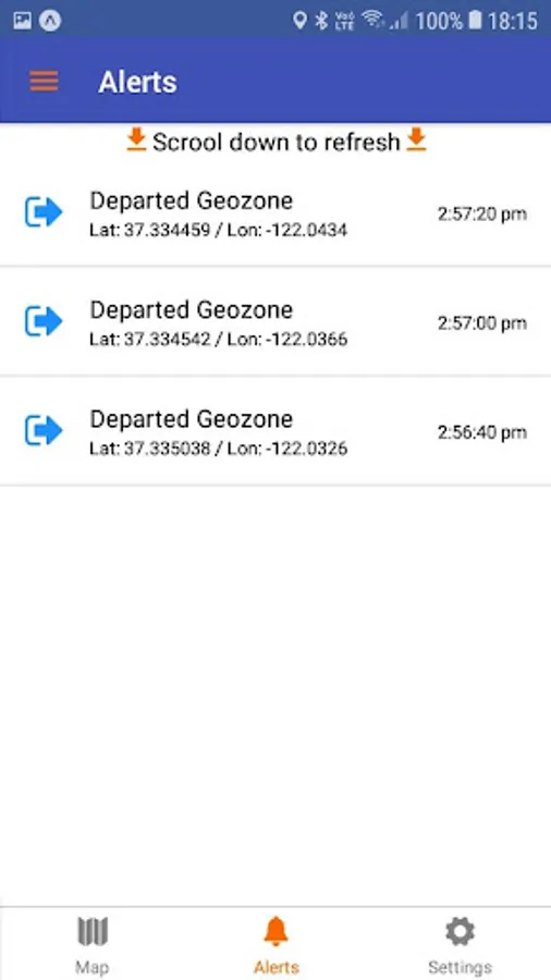 · Get instant push notification alerts when you enter or exit a geozone, exceed a speed limit, need a sensor status, and when in an alarm state.