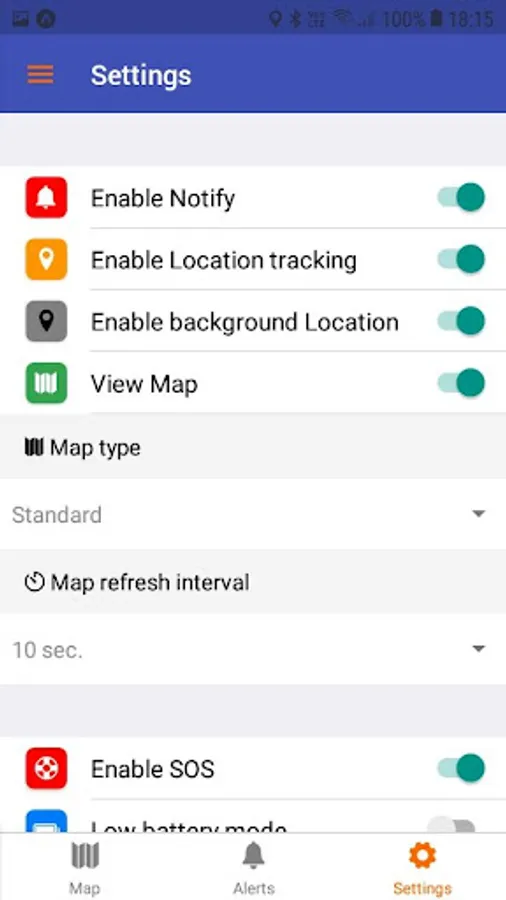 TRACK: track your position using your smartphone or tablet as a real GPS device and sending your location to the main server at selected time intervals.