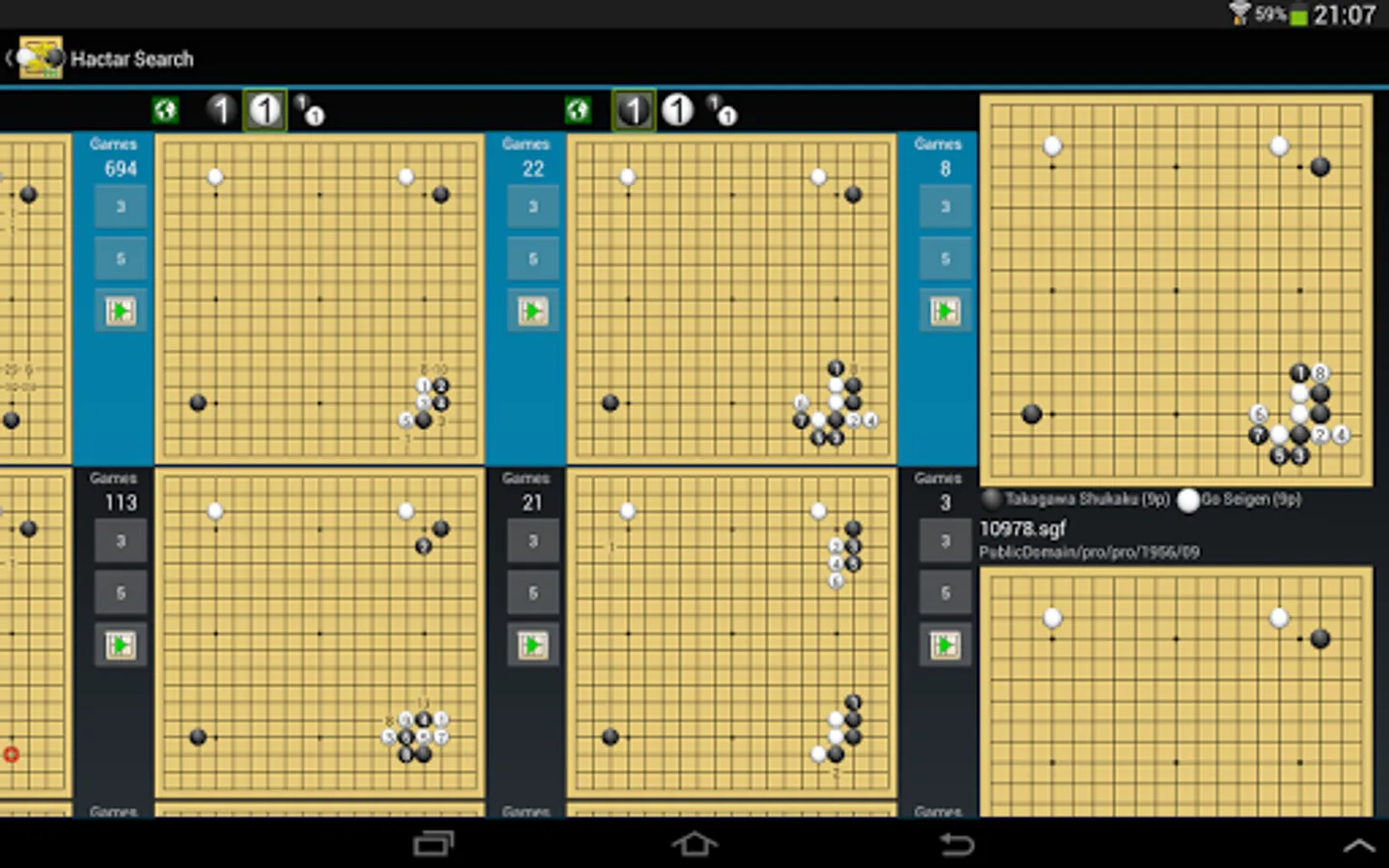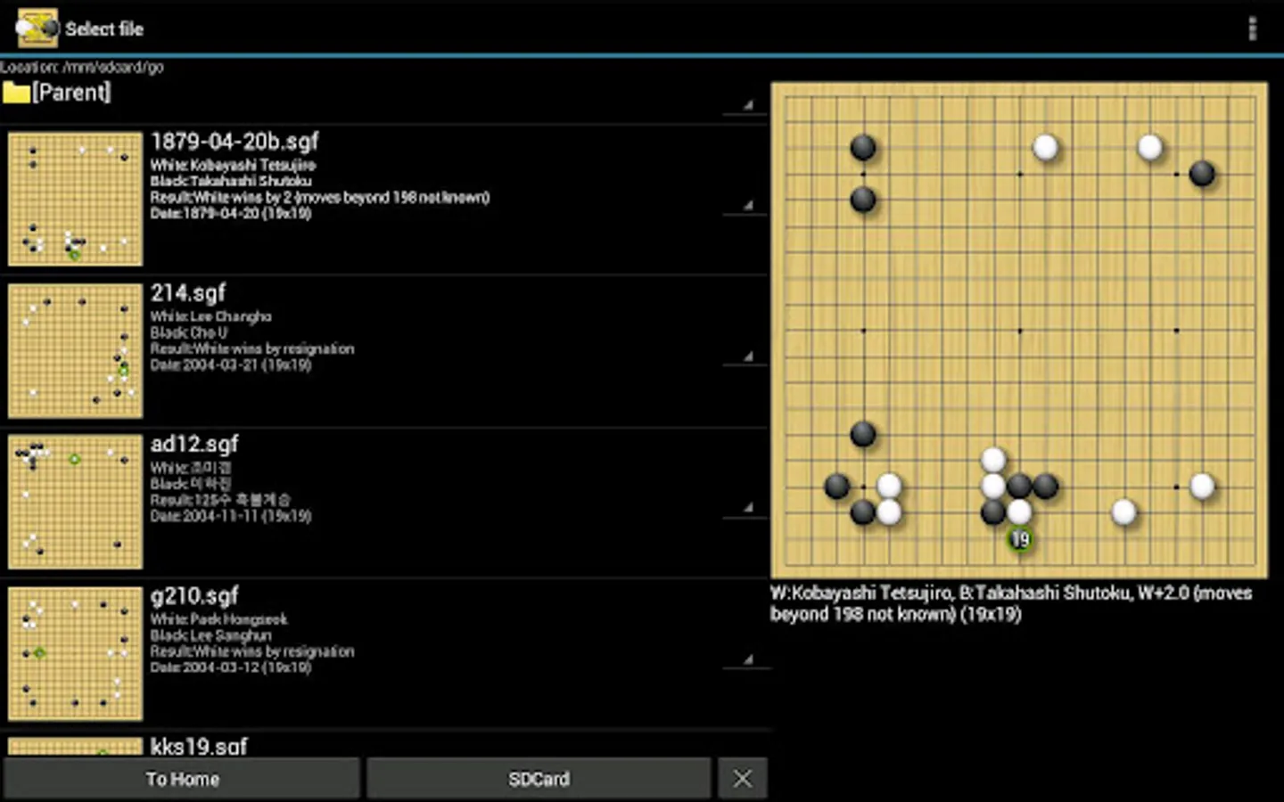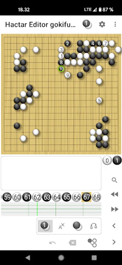 Hactar GO can be used to view and record go games in SGF format. Hactar supports variations and setup stones. Hactar can automatically replay games.