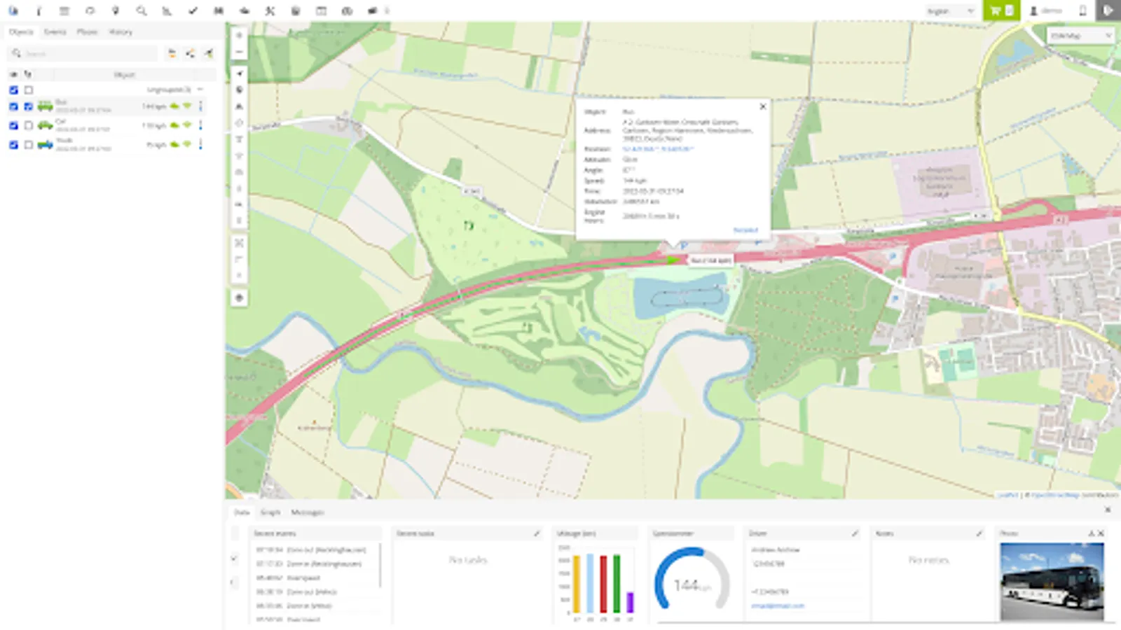 - Get detailed reports about trips, mileage, driving behavior, fuel usage and thefts, activity in particular zone or route. Reports are used for data analysis of particular vehicle or entire group. Reports can be exported or sent instantly to E-mail addresses in HTML/PDF/XLS format.