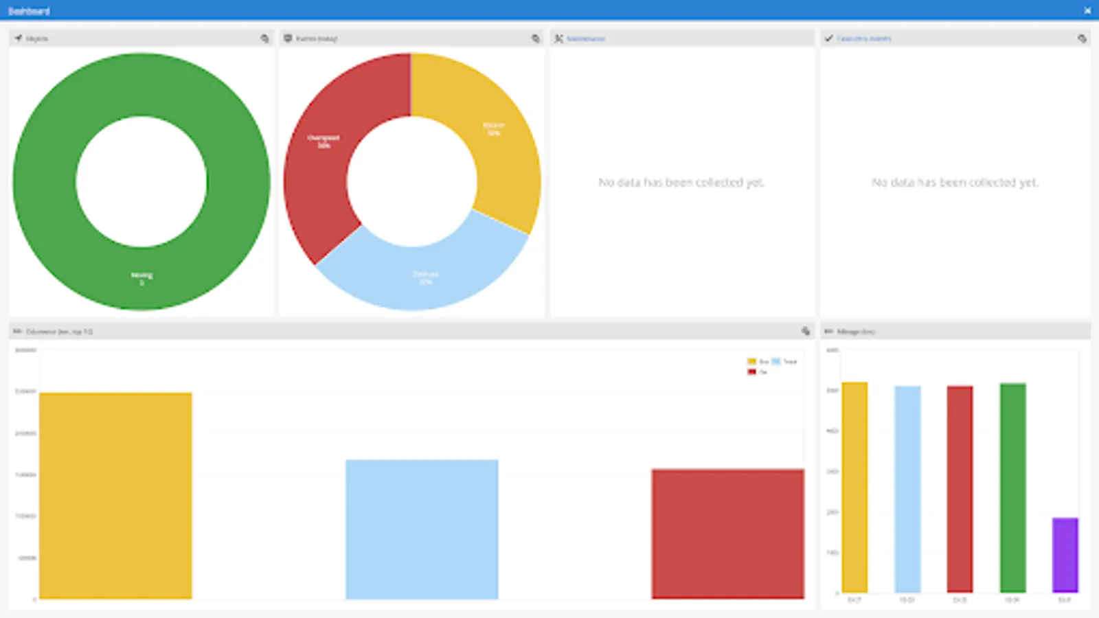 - Widgets display recent object information which is updated every ten seconds without need to refresh web page. Send commands to control device, view recent events and mileage graph.
