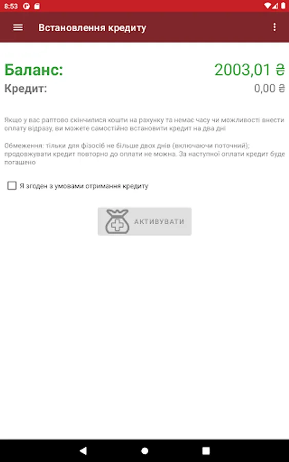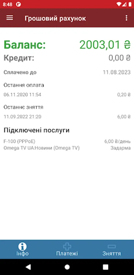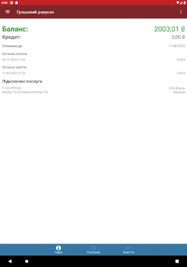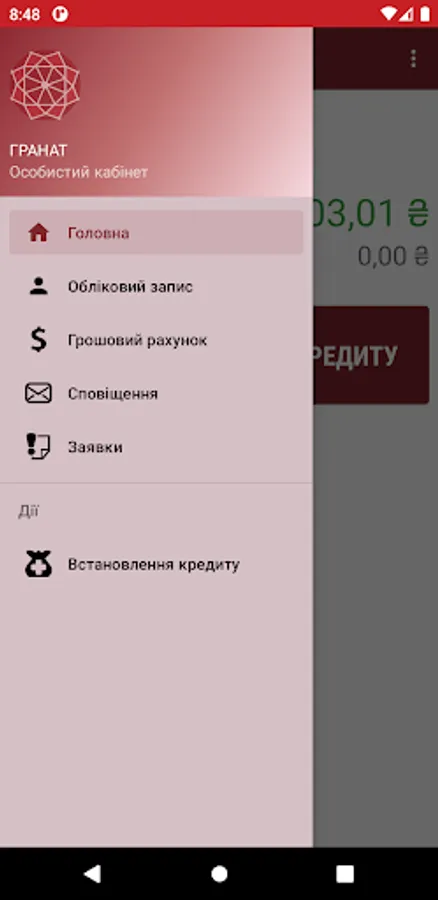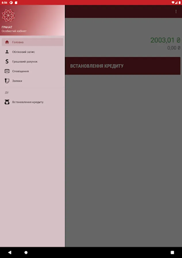A mobile application for accessing the functions of a personal account. Here you can view your current status, payments, establish credit, place a request for repairs.