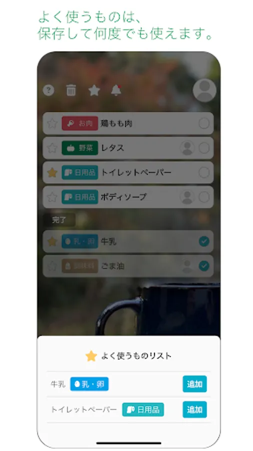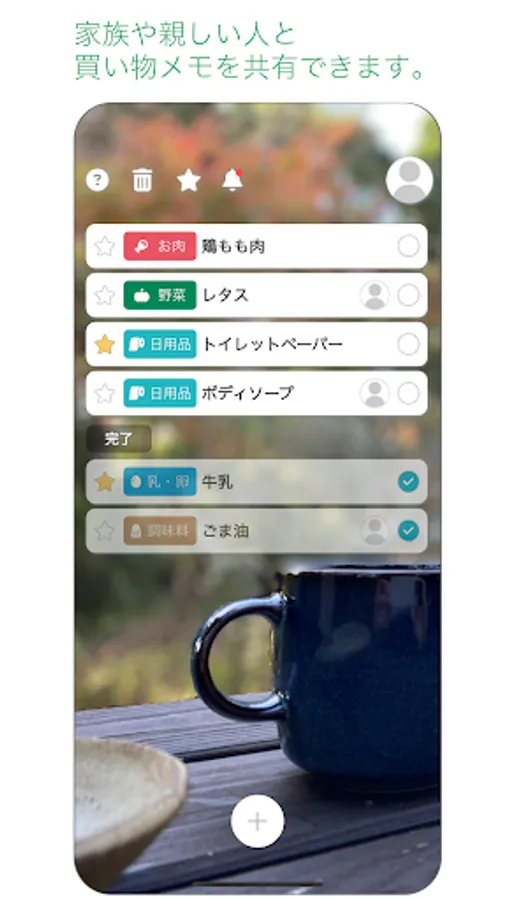 The memos are sorted by category, such as groceries and daily necessities, so it is useful for efficient shopping.