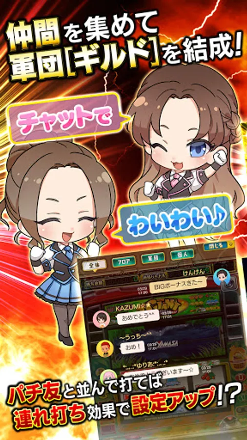 By making pachinko friends with other players, you can enjoy playing pachinko in the seat next to you, or form a guild with like-minded friends, which is full of communication elements! If you can do well at the event, you might get scouted by a powerful corps! ? First of all, feel free to “greet” and get points! !
