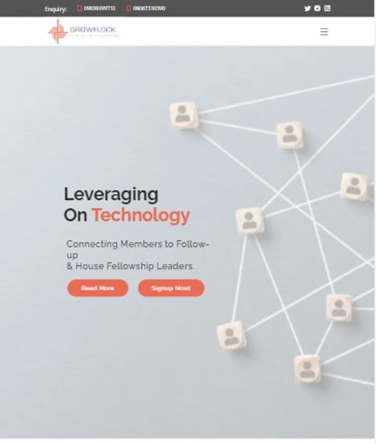 The Automated Church Counselling, Membership and Follow-Up System simply called "GrowFlock" is a user-friendly, portable and well secured application designed and developed by Eritem International Limited, for managing and following-up of new converts/visitors; new and existing church members of any church and of any size. The app has a built-in engine that automatically route task that prevents individuals from being neglected, overlooked or unappreciated; so Leaders/Pastor can more efficiently alot their time among their various ministerial duties.