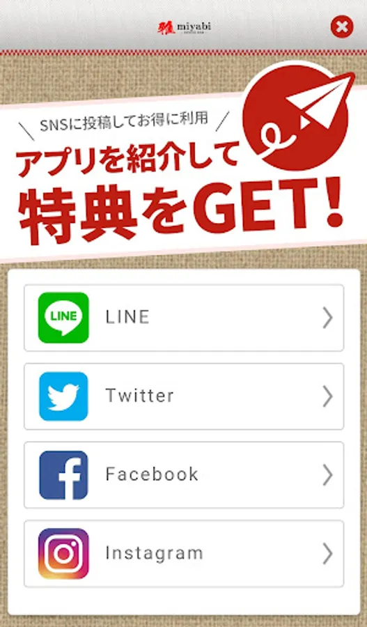 In this app, you can receive the latest information and special benefits of Miyabi Miya.