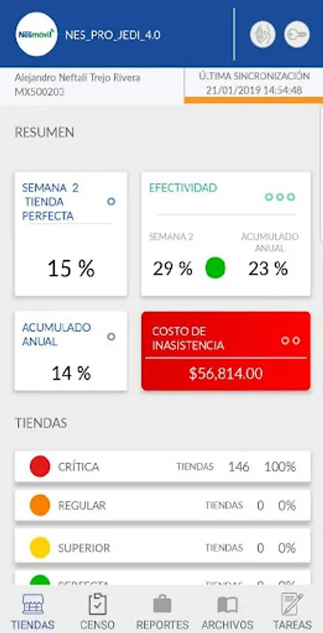 Permite capturar información de los puntos de venta de la región del Jefe de distrito, visualizar reportes y tareas de los supervisores y mercaderistas.