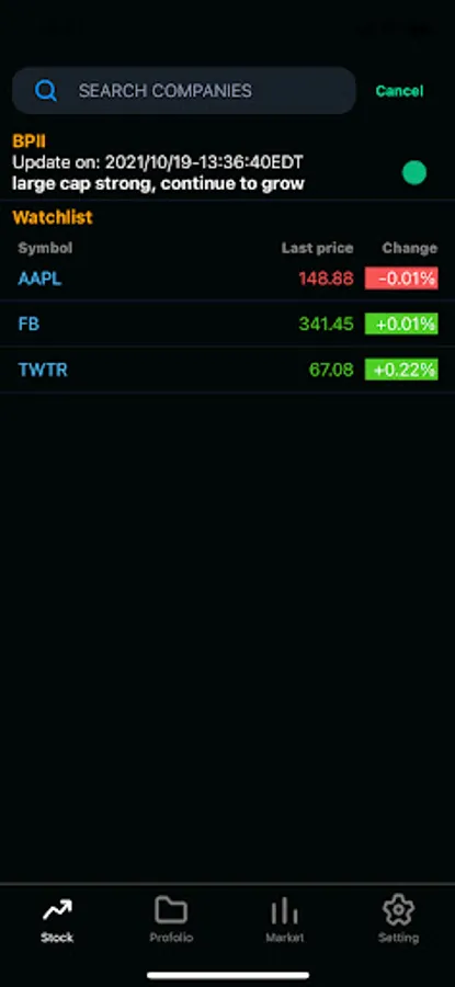 GFin is a smart financial service platform that provides the latest market Buying Power Index Indicator (BPII), real-time quotes, and technical analysis for US stock trading and equity portfolio. Specialized suggestion for a customized portfolio of your favorite companies is also available.