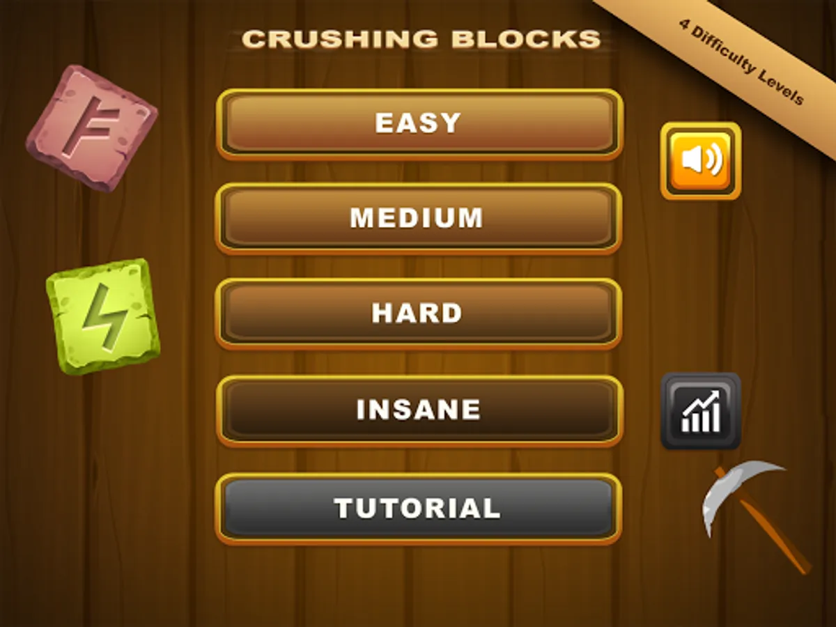 4 difficulty levels to choose from: Easy, medium, hard and insane.