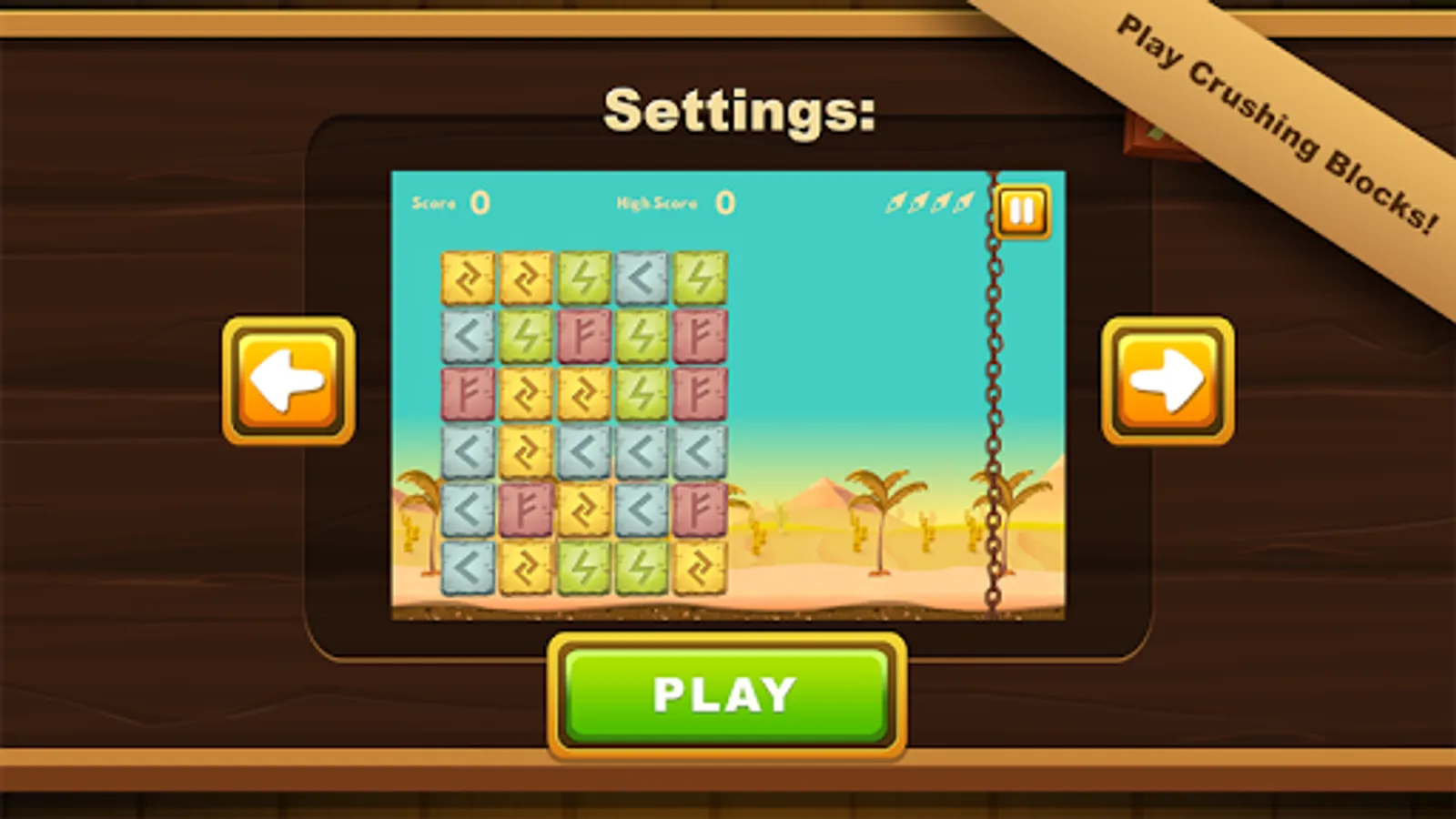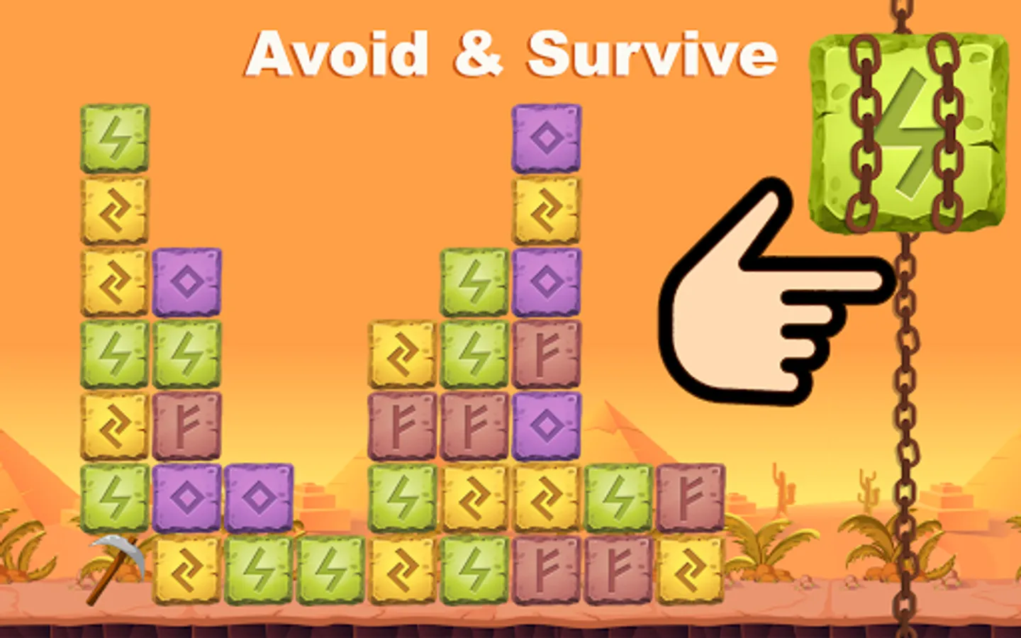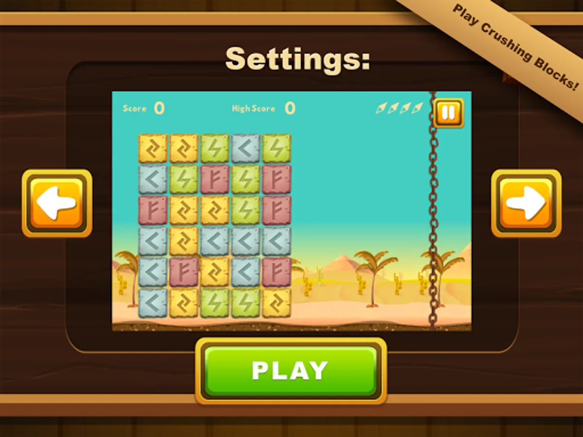 Game features colored block pieces which you have to tap to match. As you make matches, the blocks are pushed towards the chain. Objective of the game is to keep the field clear and the blocks from reaching the chain. Hatchets are randomly made available which you can use to crush full rows of blocks. Avoid getting chained down if you want to survive!