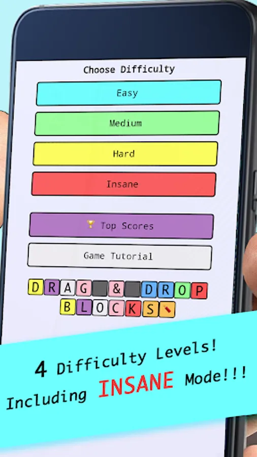 The game features 4 difficulty levels which keeps it addictive and challenging at all times. These 4 difficulty levels are: