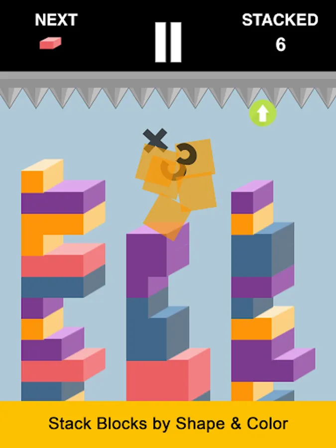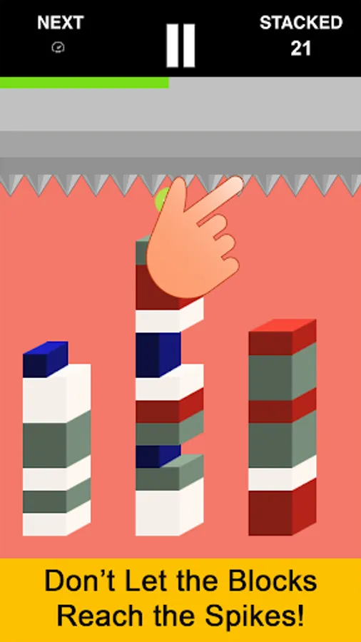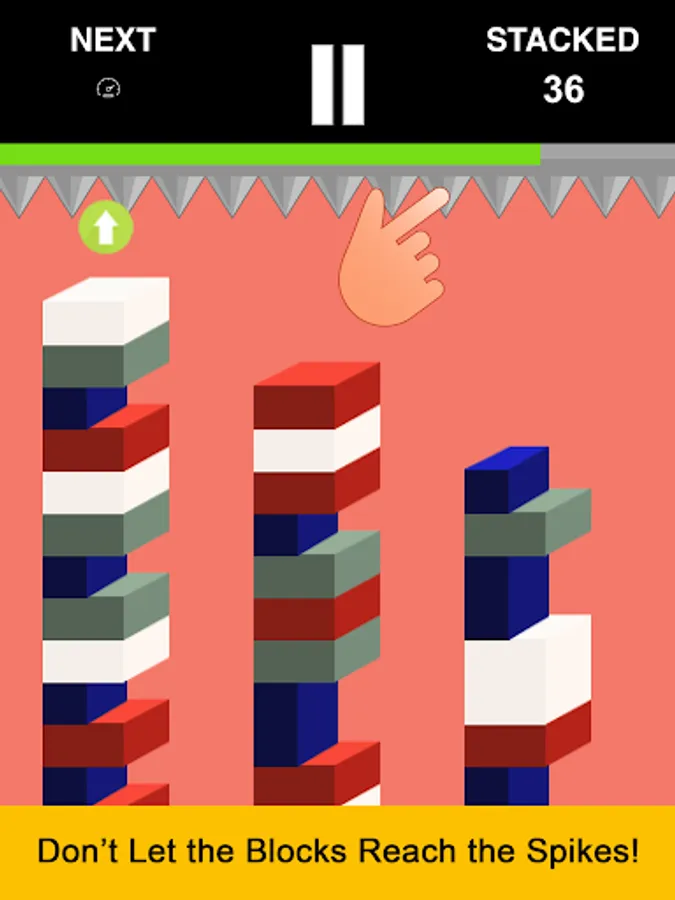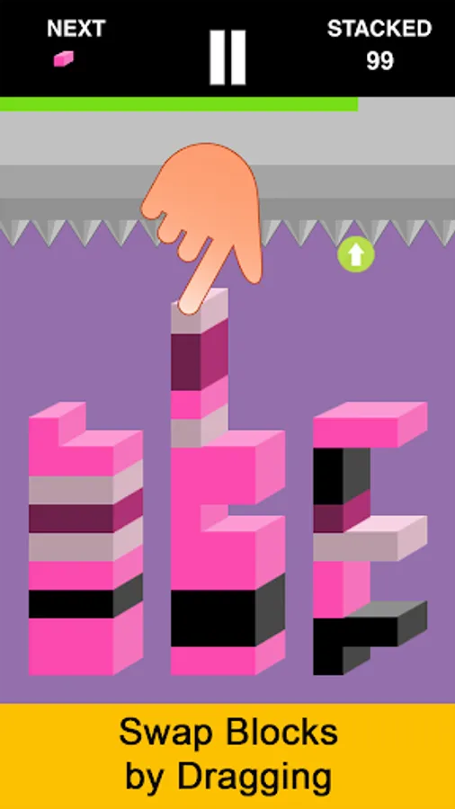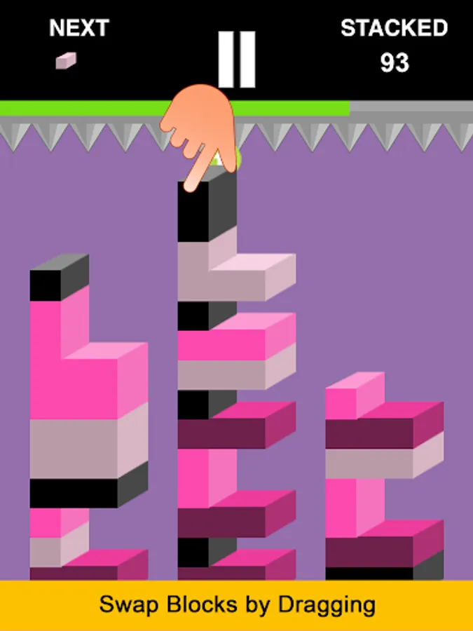 Sounds easy, right? Well not really because new blocks fall down while you attempt to switch & match existing ones. If you don't move fast enough, your tower of blocks will hit the spikes and have to start over.