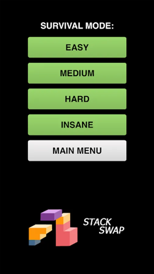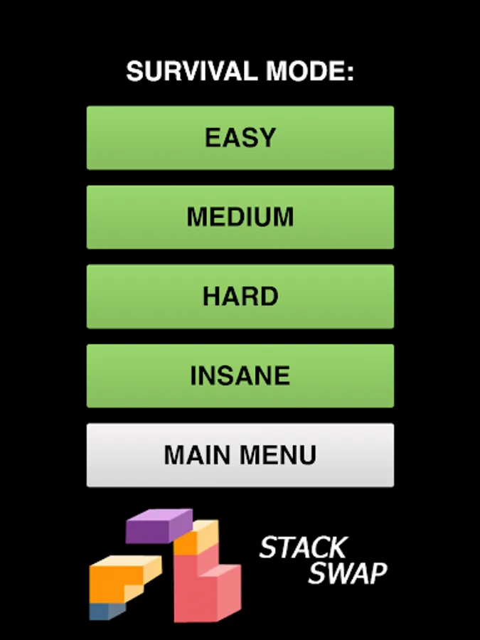 Survival mode on the other hand lets you choose your difficulty level. The difficulty levels for survival mode are "easy, medium, hard and insane".
