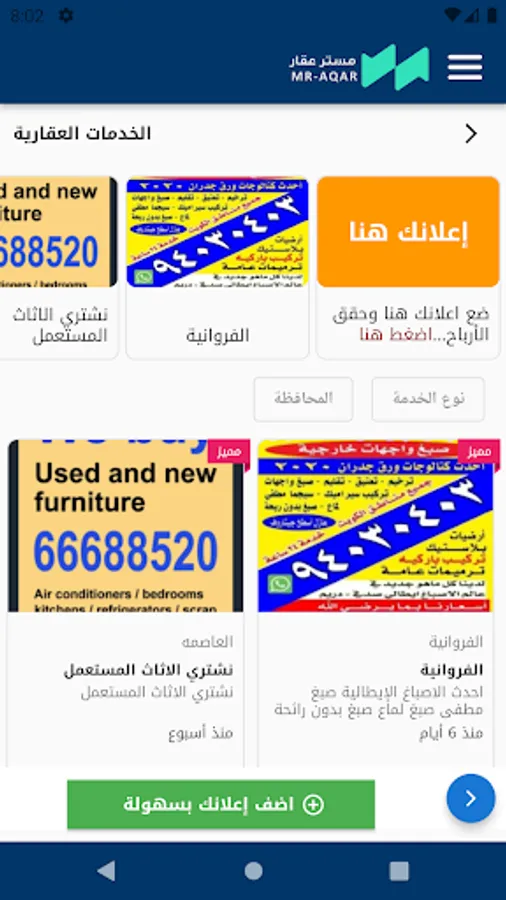 - اضافة اعلانك مع تفاصيل العقار مجانًا