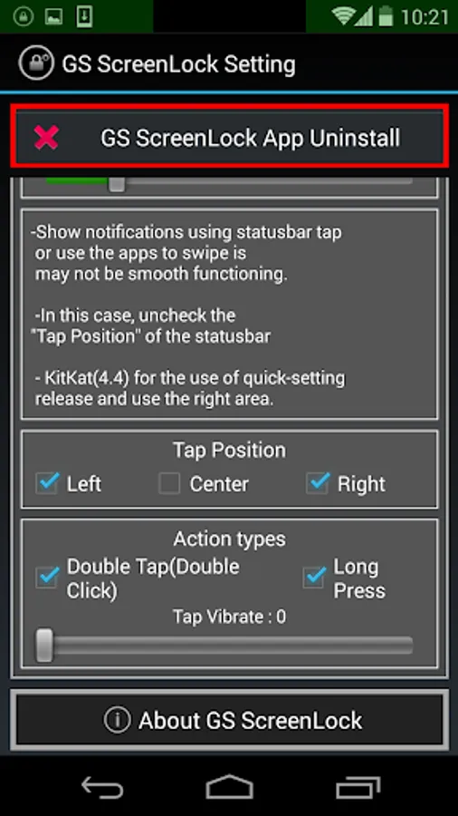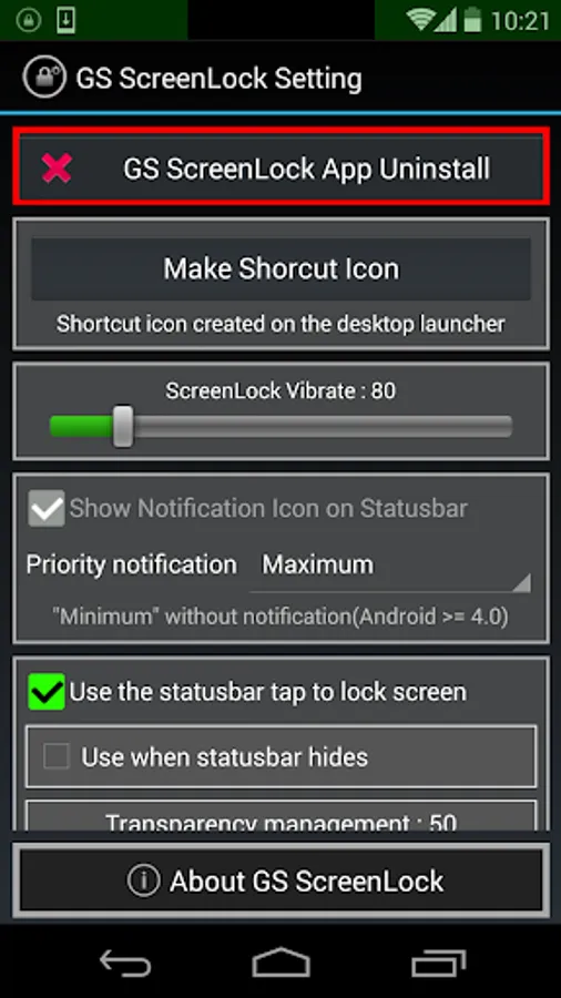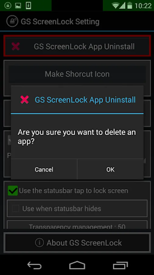 - "GS ScreenLock App Uninstall" on the screen when it is set to delete the app, please delete button.