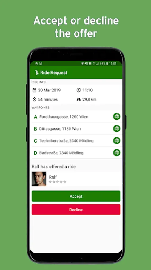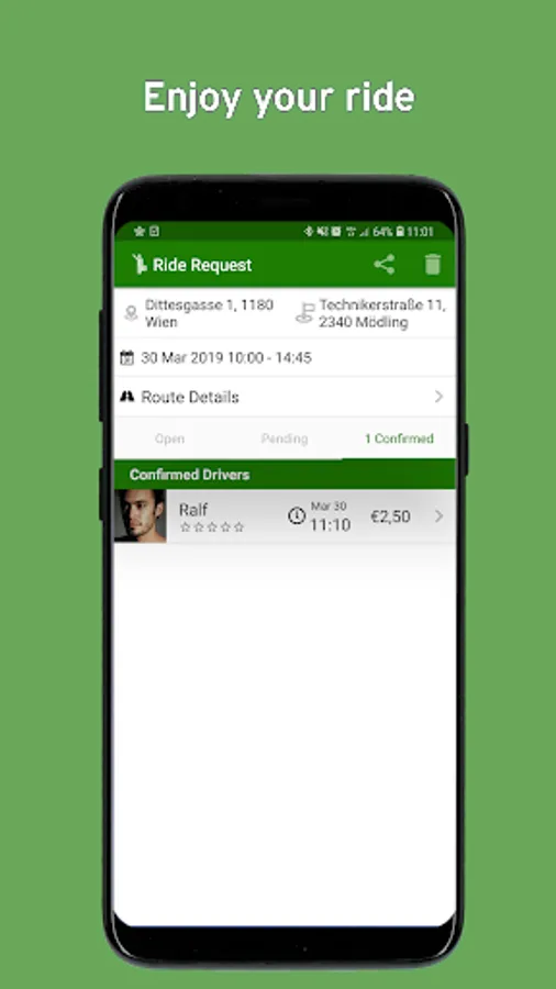 Just post your ride offers or find the perfect ride and you'll receive a notification once a suitable match (driver or passenger) was found.